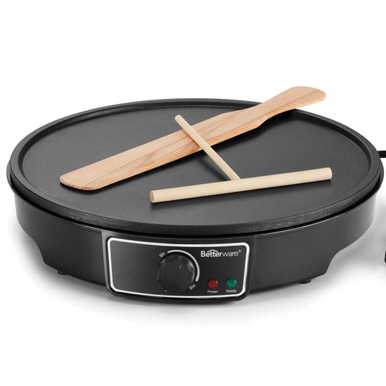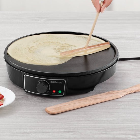 Prepara los más deliciosos platillos con la Better Crepas Betterware. Esta increíble solución eléctrica te permitirá preparar no solo ricas crepas, saladas o dulces, sino también otros deliciosos platillos como sincronizadas, quesadillas y muchos más gracias a su plancha antiadherente. Cuenta con perilla reguladora de temperatura, patas antideslizantes y accesorios básicos para preparar crepas. Eléctrico. 1000 W/h. Aluminio, plancha antiadherente y baquelita. D 30 x 8 cm. Incluye pala y esparcidor de masa.