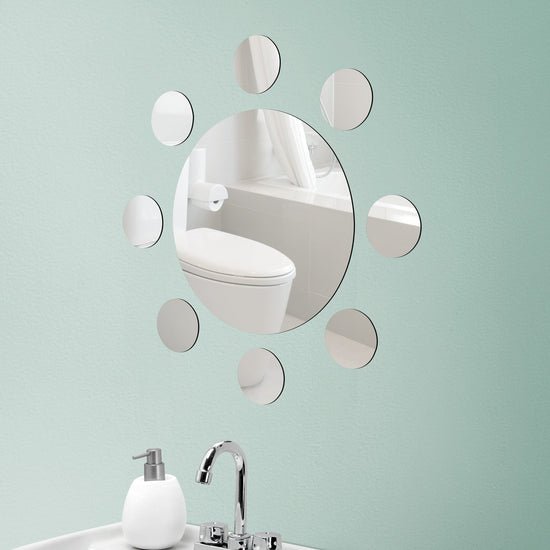La decoración en el hogar no tiene límites. Con el Circu Espejos lograrás tener paredes con un estilo moderno y elegante. Colócalos donde más te guste: en la sala, el cuarto, el baño, ¡tú decides! Poliestireno con efecto espejo. 9 piezas. Grande: D. 35 cm, pequeños: D. 9 cm. Instalación con adhesivo.