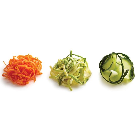 Aprovecha al máximo tu tiempo al preparar alimentos con Corta Espiral 3 en 1. Puedes rebanar o elegir entre un corte grueso o delgado para tus verduras.