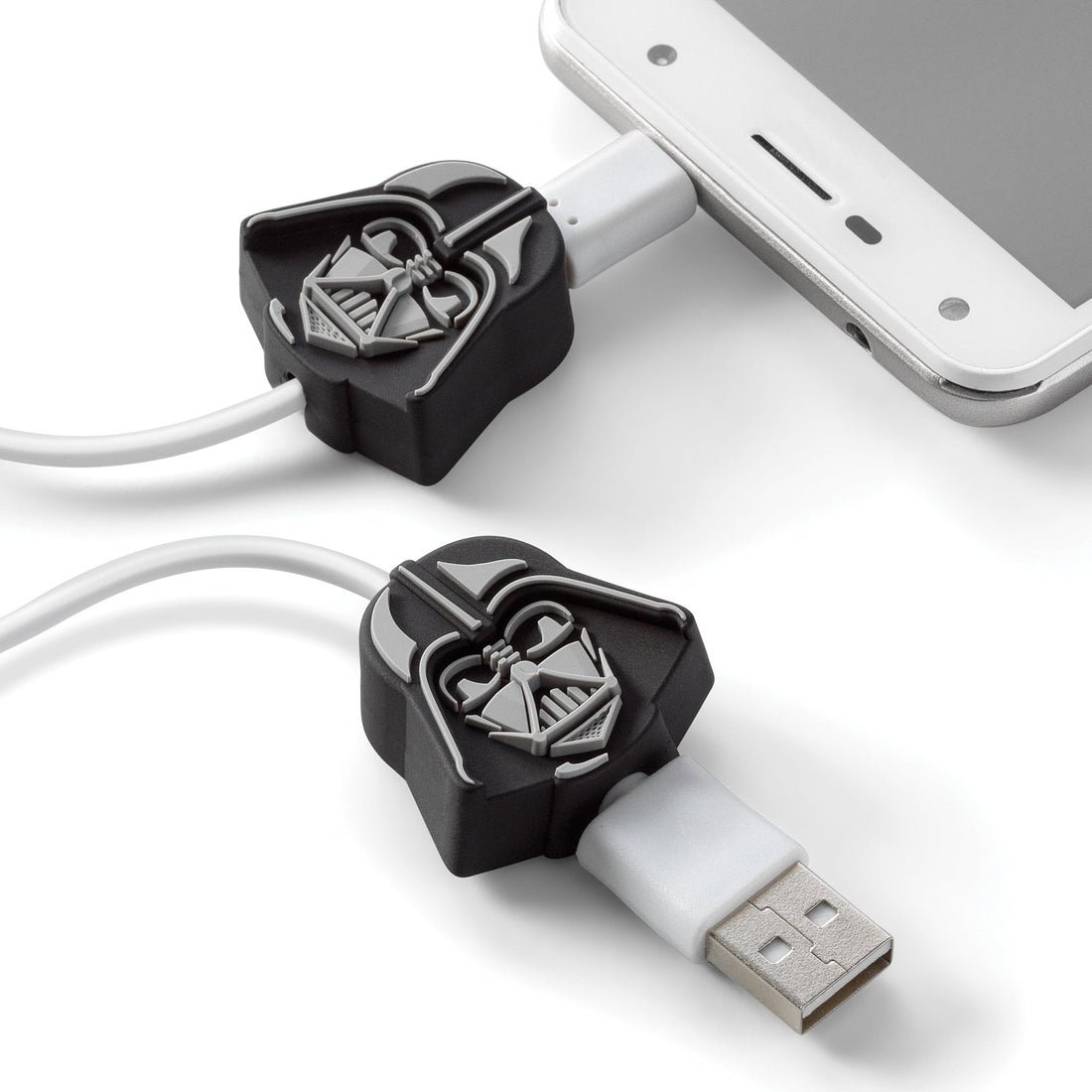 PVC. 3 x 3 x 1 cm. Utiliza este original protector de cables en forma de Darth Vader para cuidar los cables de tus dispositivos. ¡Diles adiós a los cables rotos gracias al Darth Vader Come Cable y que la fuerza te acompañe!