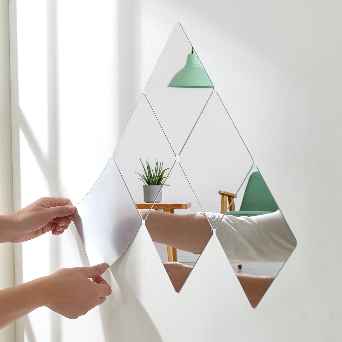 Poliestireno con efecto espejo. 6 piezas. 15 x 15 cm. Instalación con adhesivo. Dale un toque de estilo a cualquier espacio de tu hogar con Set Deco Espejos. Son 6 piezas para que las coloques juntas o en bien en varios espacios de tu hogar.