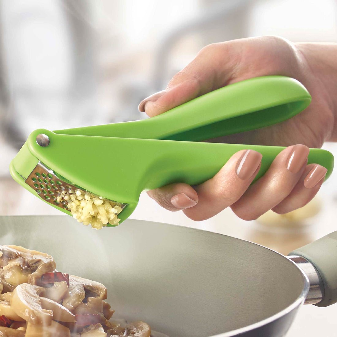 ABS y acero inoxidable. 17 x 6 x 3 cm. El Exprime Ajos será una de tus mejores herramientas en la cocina, ya que te permite incorporar este ingrediente a todas tus recetas sin necesidad de usar un cuchillo. Es muy fácil de usar, solo tienes que presionar para obtener ajo finamente picado.