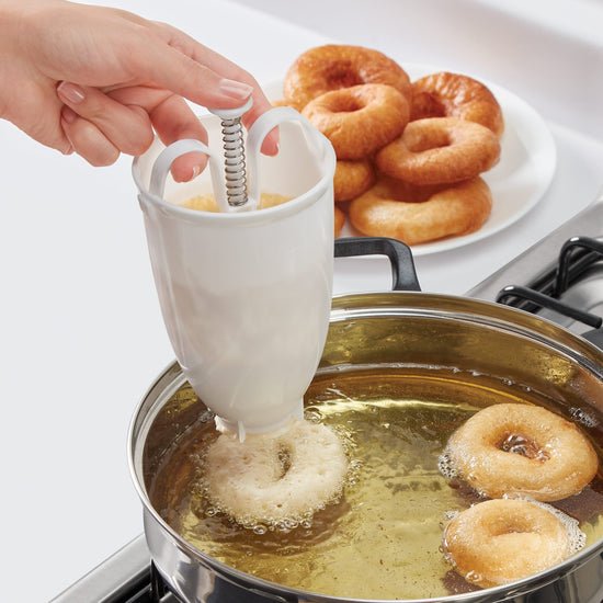 Sorprende a tu familia con unas deliciosas donas hechas en casa. Con la ayuda de Fábrica de Donas obtendrás la forma perfecta. Polipropileno y acero inoxidable. Cap: 350 ml. D. 10 x 18 cm.