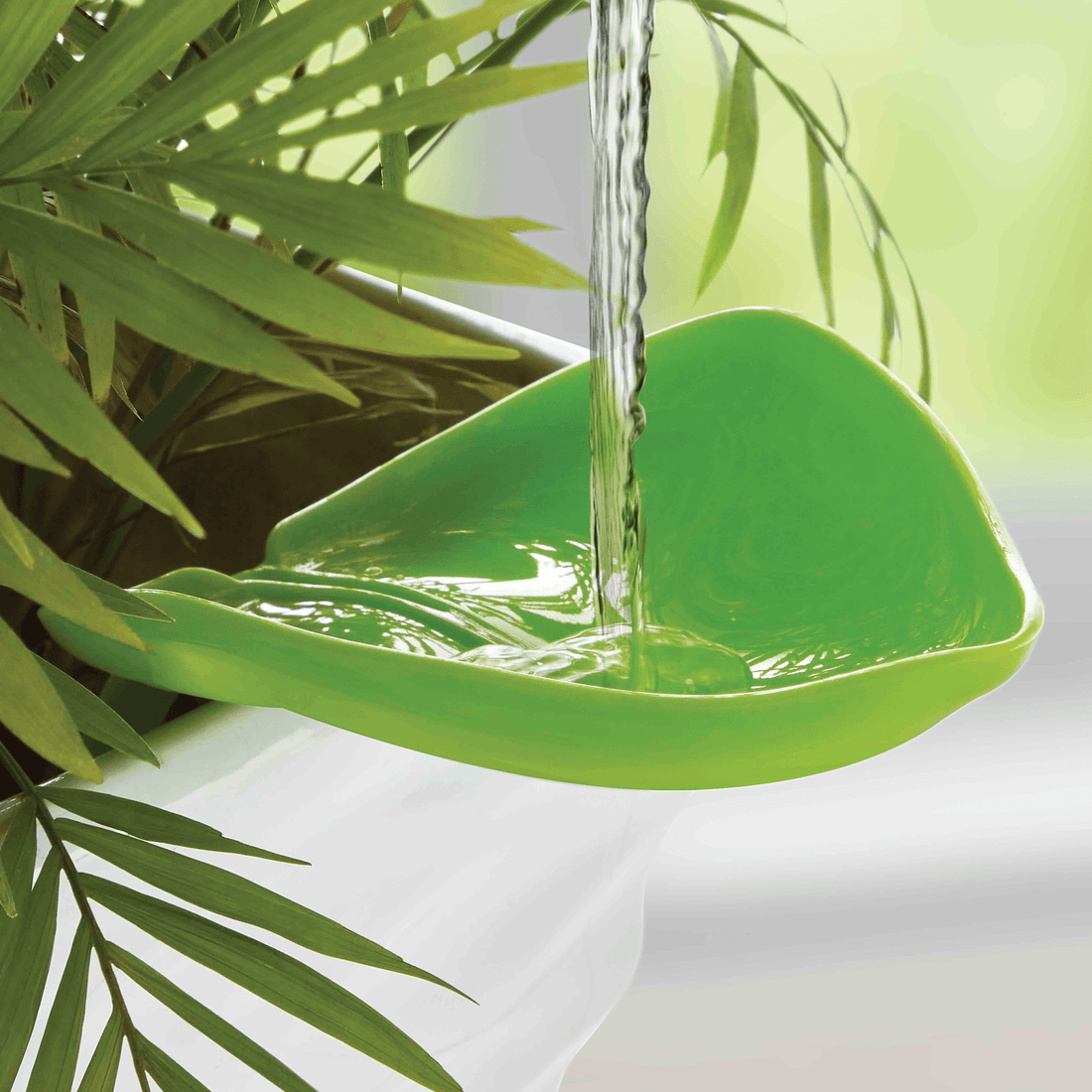 Polipropileno. 1 pieza. Cap: 40 ml. 17 x 9 x 5 cm. La Hojita Riega Fácil es un adaptador de riego para plantas de maceta que evita salpicar agua. Solo coloca la Hojita Riega Fácil dentro de la maceta y vierte agua.