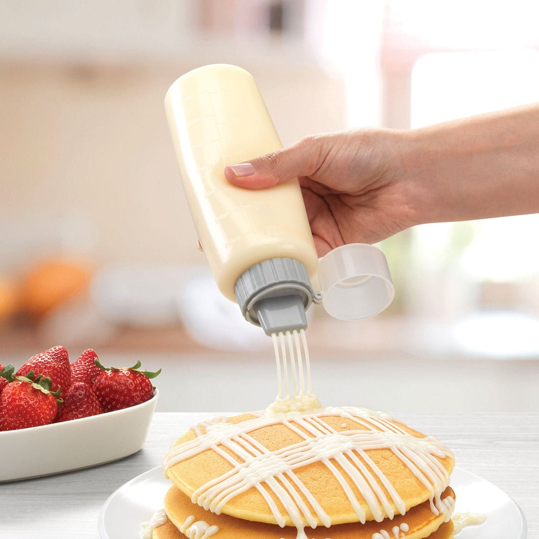 Polipropileno. Capacidad: 350 ml. D. 6 x 19 cm. Dispensa y dispersa fácilmente y sin derrames líquidos viscosos como miel y leche condensada con el Squizi Betterware. Esta solución para tu cocina te permitirá colocar de manera ordenada y sin manchar, líquidos viscosos en tus alimentos gracias a su flexibilidad, sólo es necesario presionar para que el producto salga por los orificios que permitirán un mejor esparcimiento. Además su tapa cuenta con antibloqueo de orificios, lo que evitará que éstos se tapen.