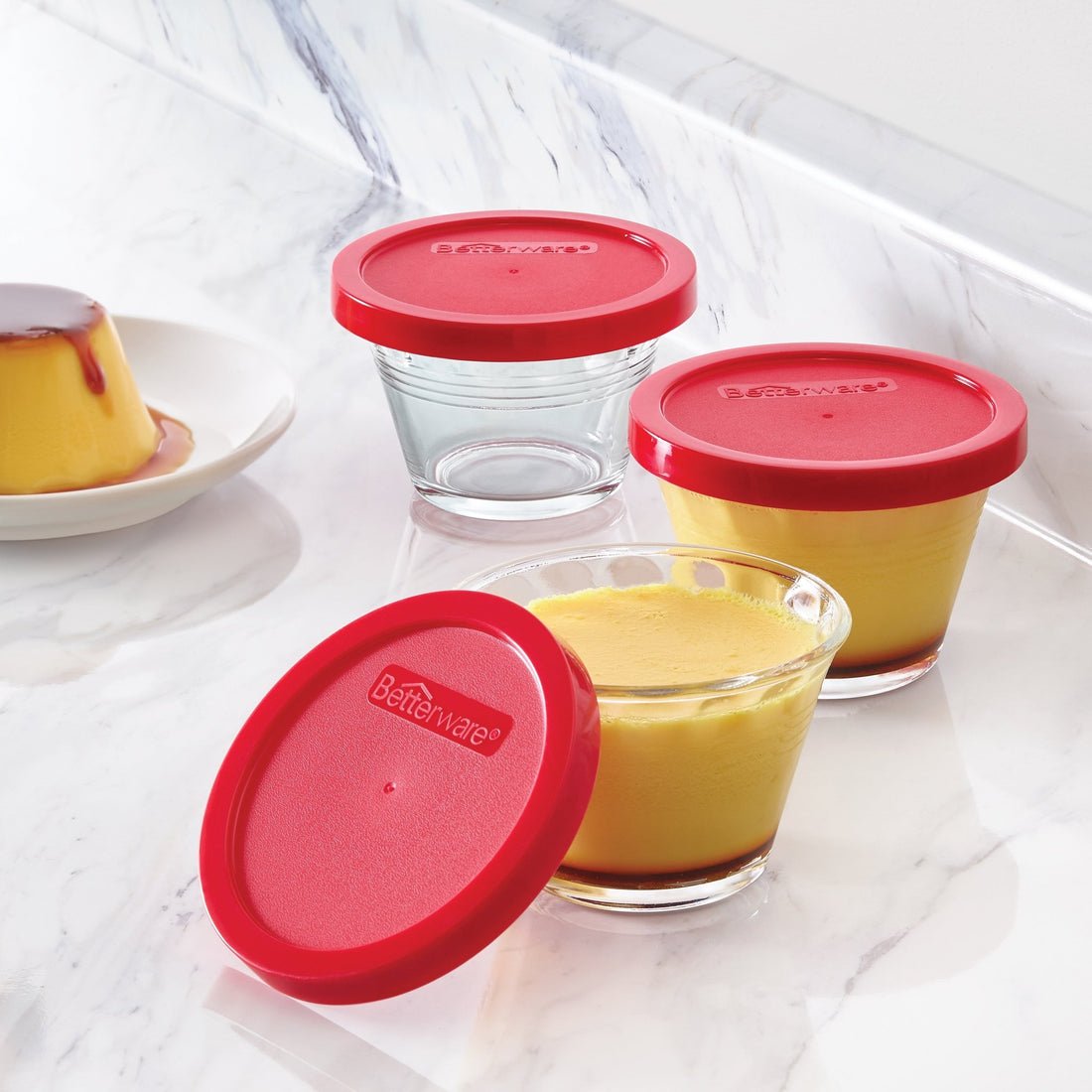 Los postres forman parte de la cocina mexicana y uno de los más fáciles de hacer y populares en nuestro país es el flan casero. Disfruta en casa de esta delicia preparada en las Vitro Flaneras, en las que también puedes preparar jericallas o gelatinas. Con Betterware, ¡harás ricas recetas para toda tu familia! Vidrio y polipropileno. 3 piezas. Cap: 140 ml c/u. D. 9 x 6 cm. Incluye tapas.